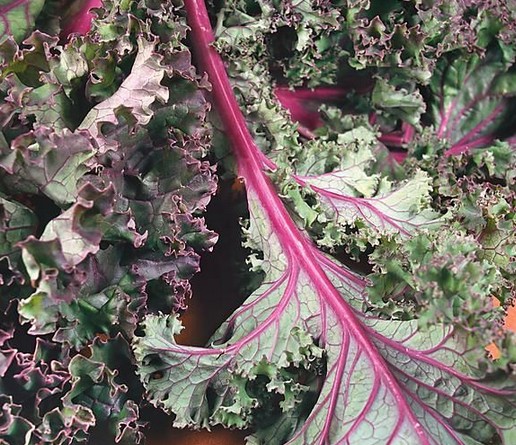 type frisé rouge grand, longues feuilles frisées, vert foncé veiné de rouge puis rouge en hiver, très bonne résistance au froid. Se récoltent après une première gelée, époque où les légumes frais sont rares au jardin