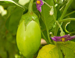 Aussi appelé plante à oeufs. On récolte les fruits lorsqu'ils sont gros comme un oeuf de poule, pour une utilisation identique aux aubergines traditionnelles.