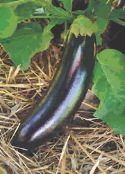 Variété très productive. Les plantes de 50-60 cm de hauteur produisent des grappes de 4 à 6 fruits élancés d’une vingtaine de centimètres de longueur, de 170 grammes et de couleur violet foncé. La chair est ferme et la saveur excellente. Les fruits sont exempts d’amertume. C’est une variété précoce et adaptée à la culture en pot. Croissance: 65-70 jours.