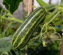 Considérée comme une plante rampante, ses fruits longs ou arrondis sont riches en eau (95%), calcium, magnésium et potassium.