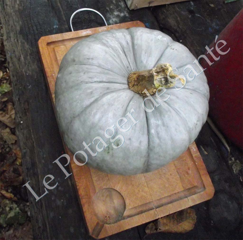 Variété très coureuse, aux fruits pouvant atteindre 4 à 8 kg, sphériques, aplatis, de couleur gris bleu uni. Peau lisse et tendre. Chair très épaisse, ferme, de couleur orange vif, sucrée, douce, de bonne qualité. S'utilise en gratin, pain, purée, potage, soufflé, tarte, confiture...