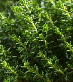 Originaire du bassin méditerranéen, le thym est très aromatisant et se prête particulièrement aux grillades de viandes et de poissons.